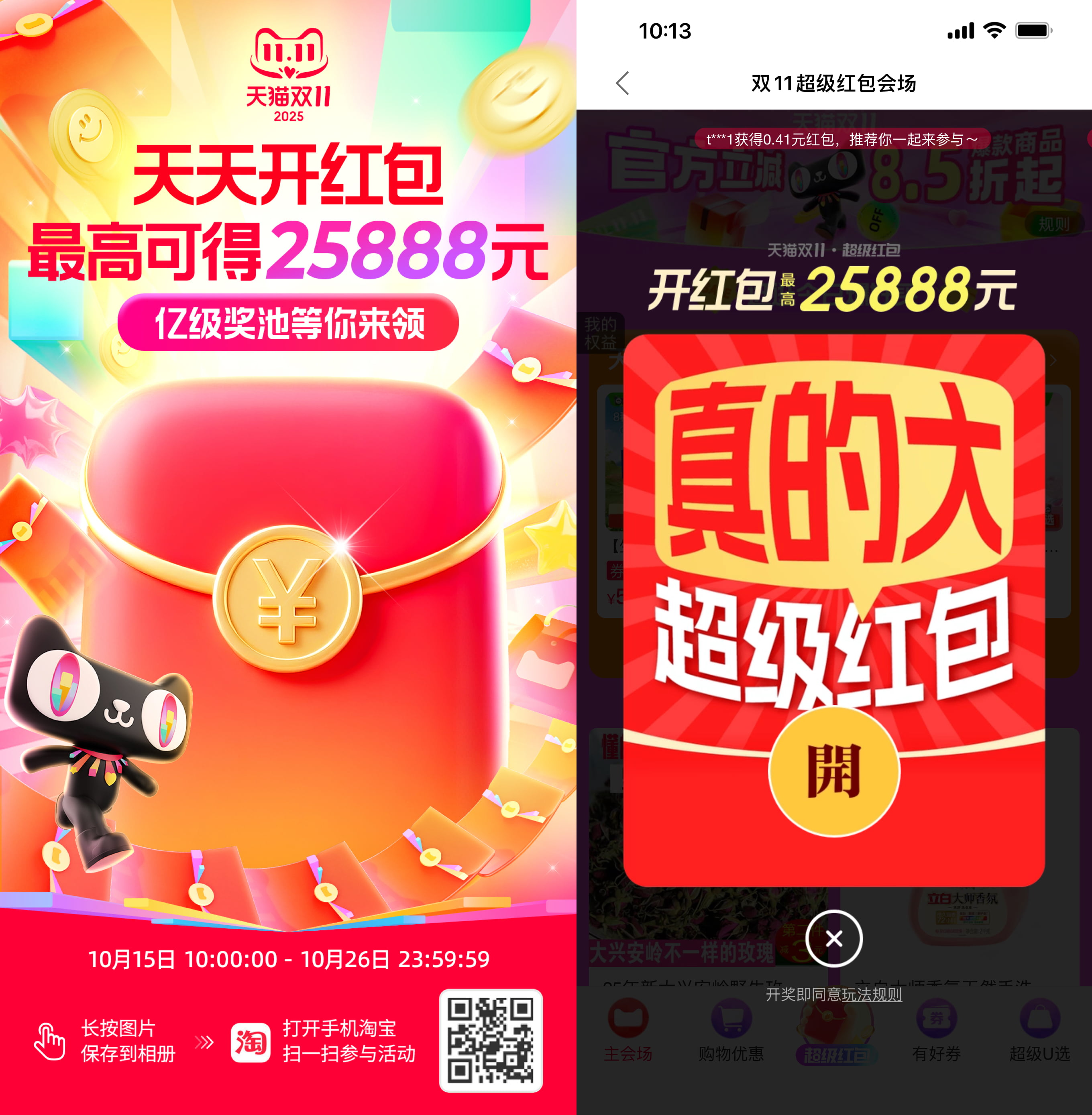 2025淘宝双11来了!每天抽无门槛通用红包!