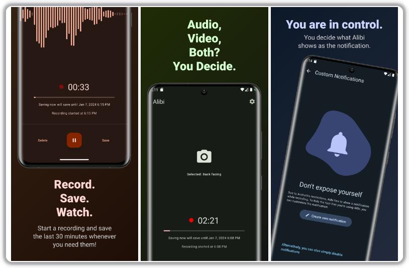 Alibi是一款开源安卓应用,可以将您的手机转变为行车记录仪,后台持续录制并在需要时保存最后30分钟的视频。支持最长24小时连续录制,具备自动删除和录制清晰度设置功能。