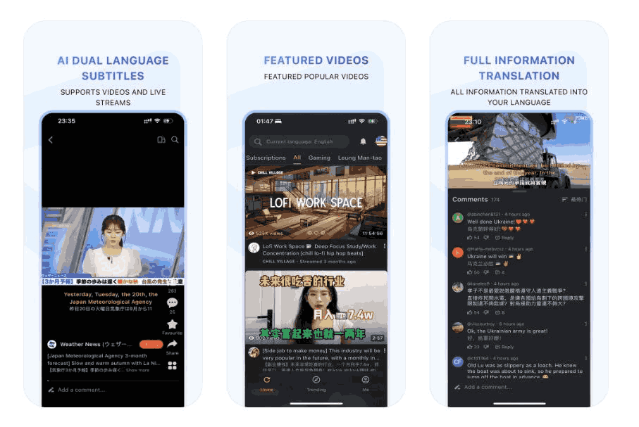 - 全界面翻译:自动将所有可见内容(包括视频描述、评论等)翻译为用户选择的语言,打破语言障碍。