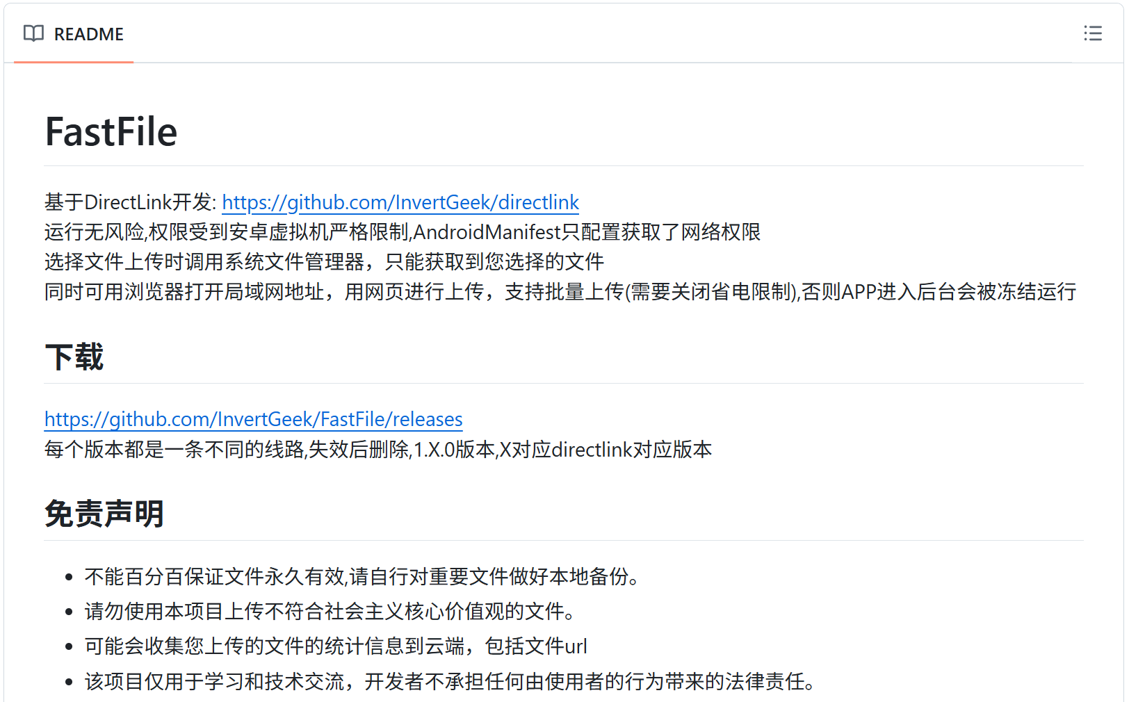 FastFile是一款专为Android平台设计的免费文件直链生成工具,能够快速生成文件的直链,方便用户进行分享和下载。用户只需输入文件的URL,FastFile便会自动生成一个可直接访问的链接,支持多种文件格式,确保能够处理不同类型的文件。FastFile的界面简洁,操作方便,用户可以轻松上手并快速使用。无论是个人用户还是团队成员,FastFile都能提供高效、便捷的文件分享解决方案,帮助用户提升分享效率,简化文件传输流程。